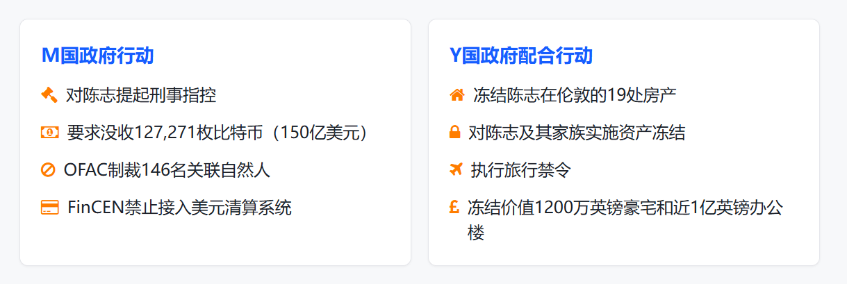 英国也同步对陈志及其家族成员执行了资产冻结与旅行禁令,冻结了陈志在伦敦的 19 处房产,包括一座价值 1200 万英镑的豪宅和一栋价值近 1 亿英镑的办公楼。这些资产被指是涉案网络通过英属维尔京群岛注册公司进行投资所得。